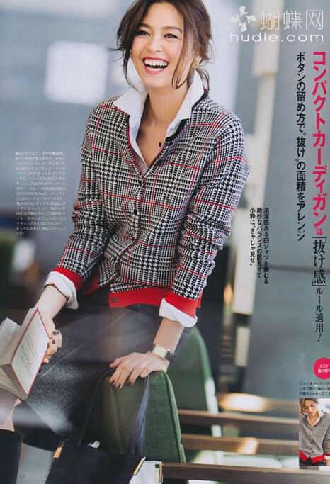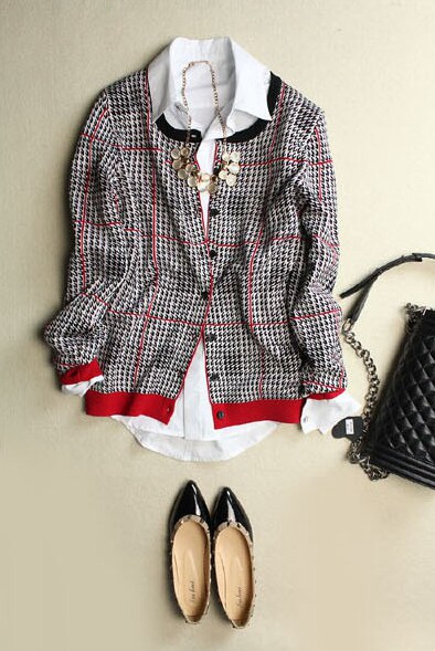 春秋新款OL百搭款黑红撞色千鸟格修身针织衫开衫长袖圆领女装毛衣