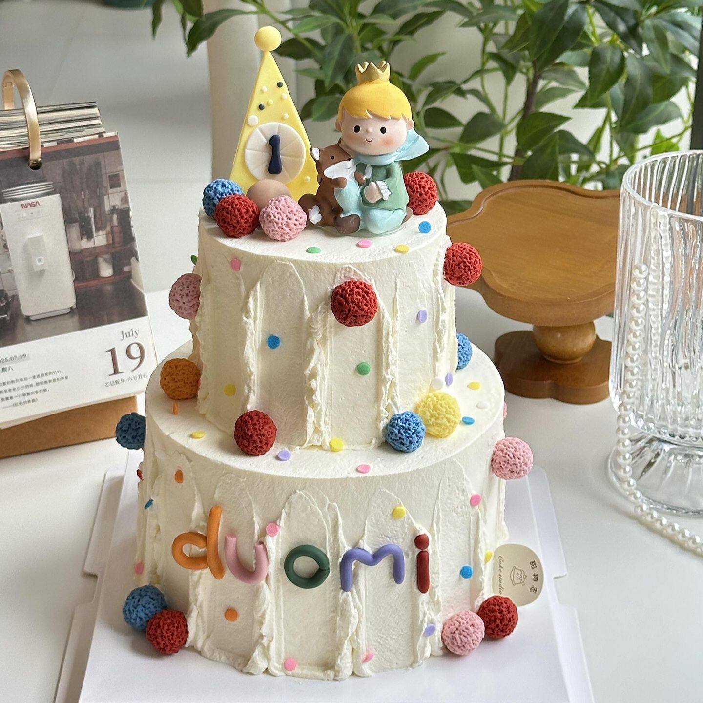 淘宝小锅烘焙屋,网红小王子蛋糕装饰摆件软陶多色小球捧花王子儿童生日烘焙装扮