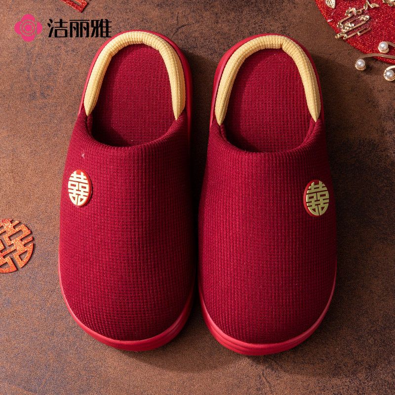 天猫grace洁丽雅豪晨专卖店,洁丽雅新婚红色厚底防滑棉拖鞋,潮流精品,品质保证