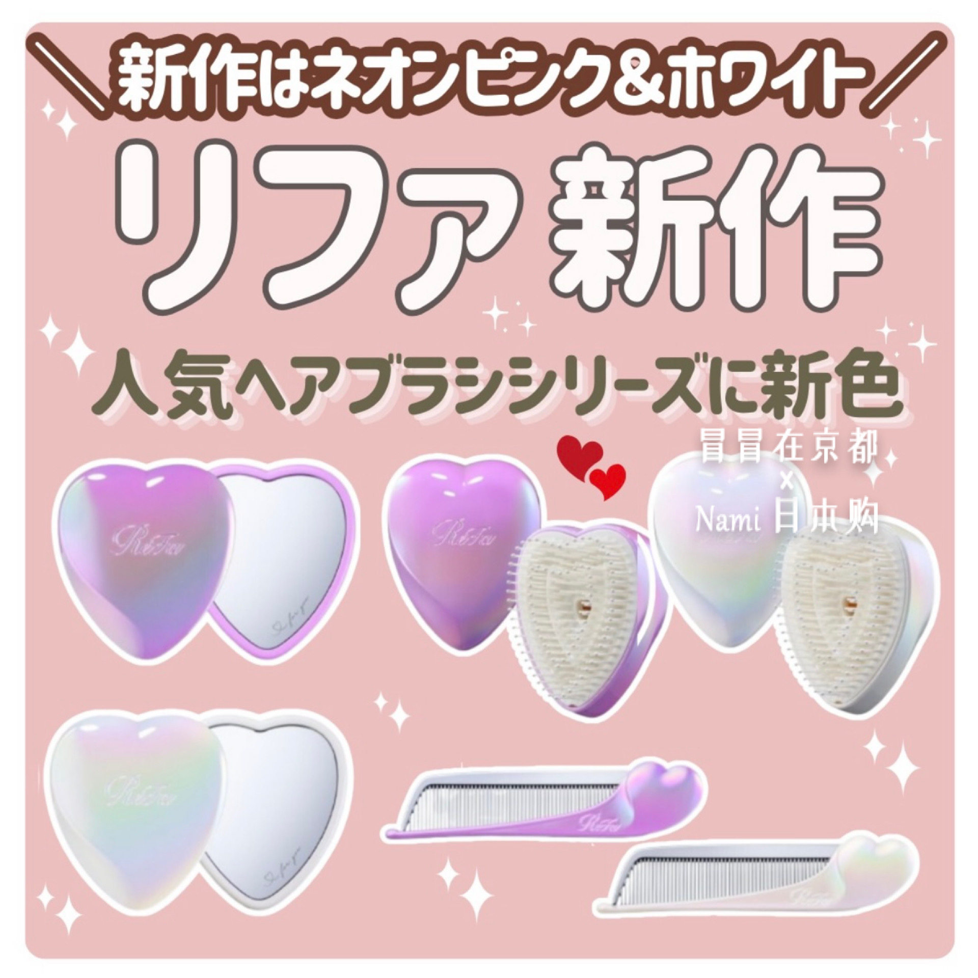 淘宝冒冒在京都,霓虹灯!日本 Refa 爱心静电梳 折叠梳子 化妆镜子 26春季限定色