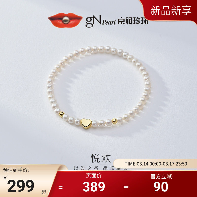 天猫京润珠宝旗舰店,京润珍珠 悦欢925银小米珠手链3-4mm近圆形珍珠精致百搭节日礼物D