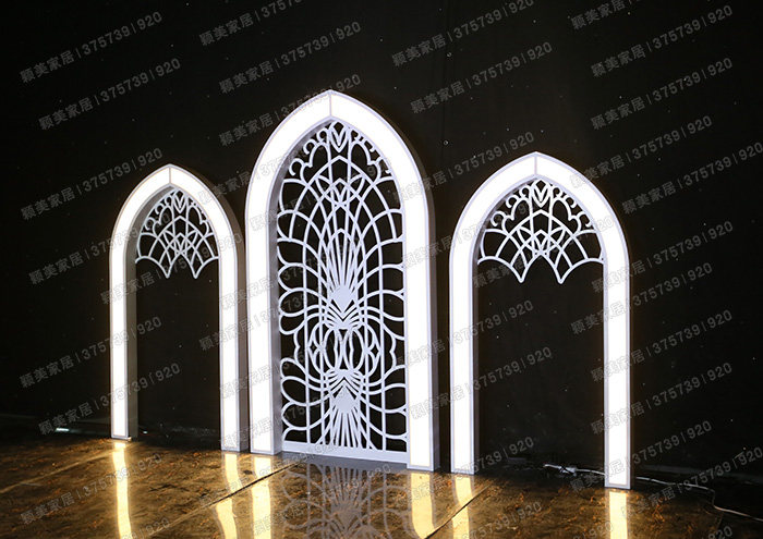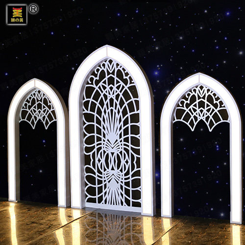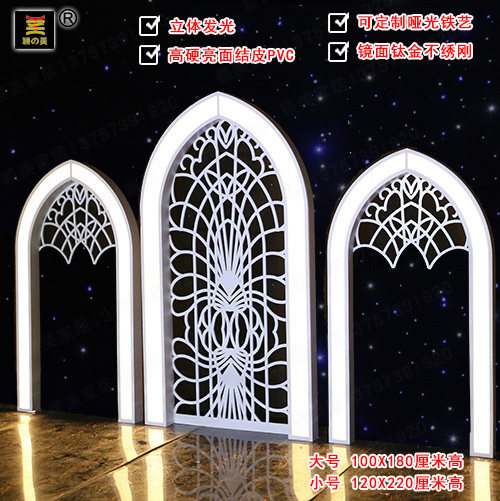颖美新款PVC舞台厨窗婚庆道具欧式立体发光拱门可定制铁艺不锈钢