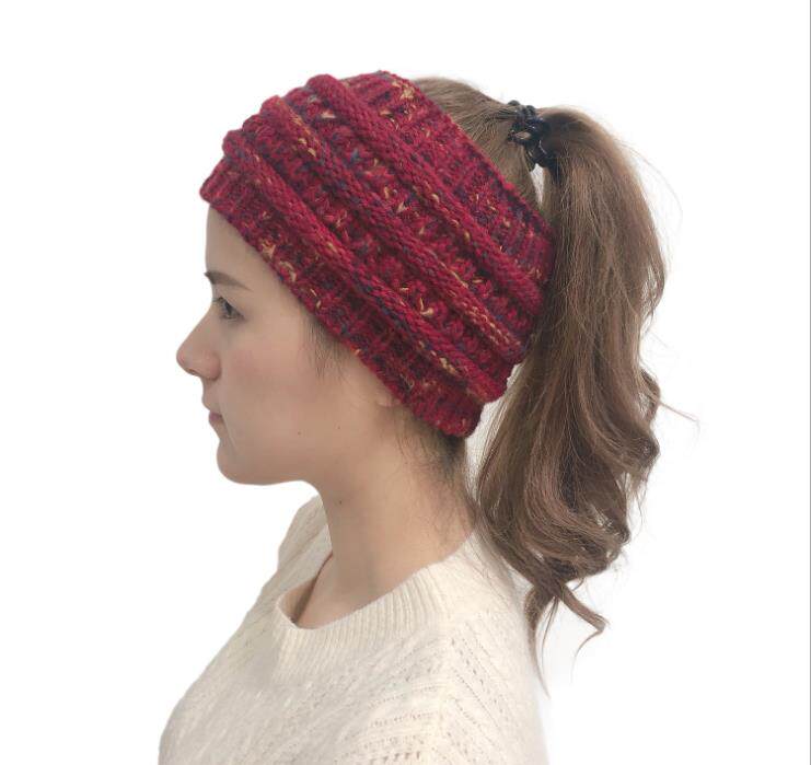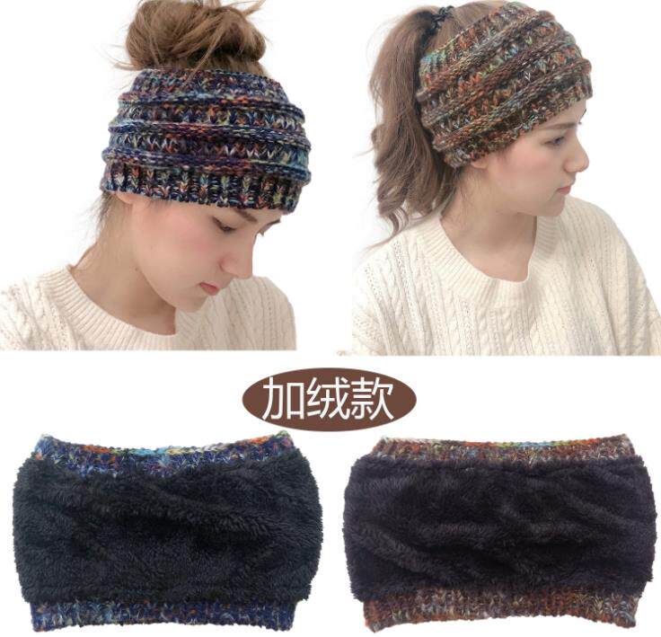 毛线帽子女冬季加绒加厚漏顶针织帽露马尾秋冬防风护耳空顶包头帽