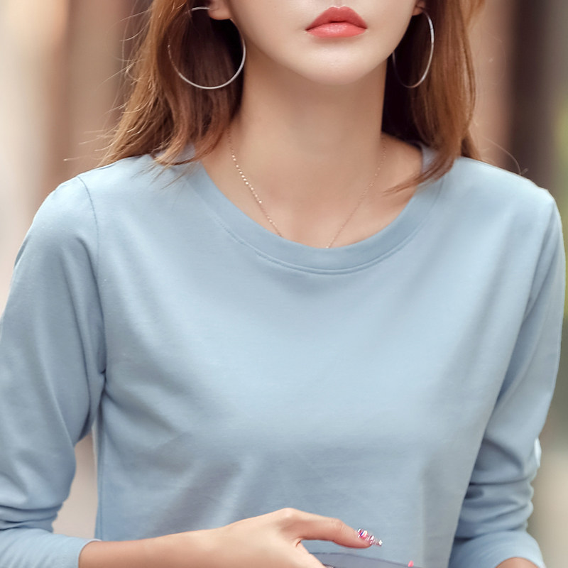 纯棉长袖t恤女纯色宽松大码全棉妇女老人上衣中年妈妈春秋打底衫