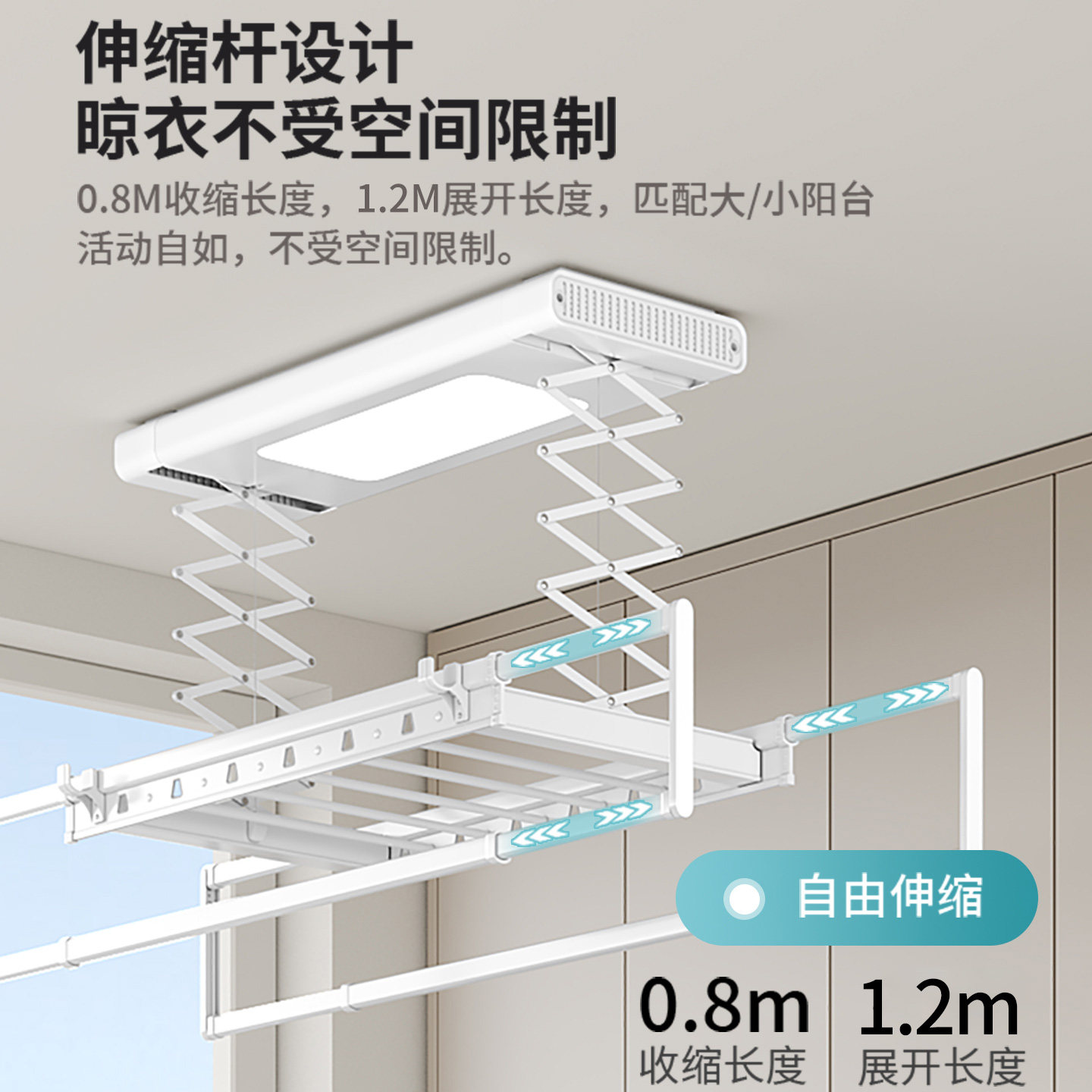 天猫巧可馨旗舰店,小尺寸80cm主机侧装电动晾衣架,电动小尺寸户型遥控自动升降阳台侧装一米