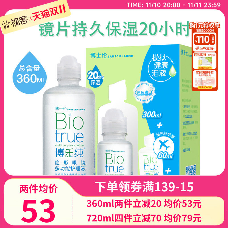 天猫视客眼镜旗舰店,博士伦博乐纯隐形近视眼镜美瞳护理液瓶300+60ml官方旗舰店正品,官方授权 原装正品