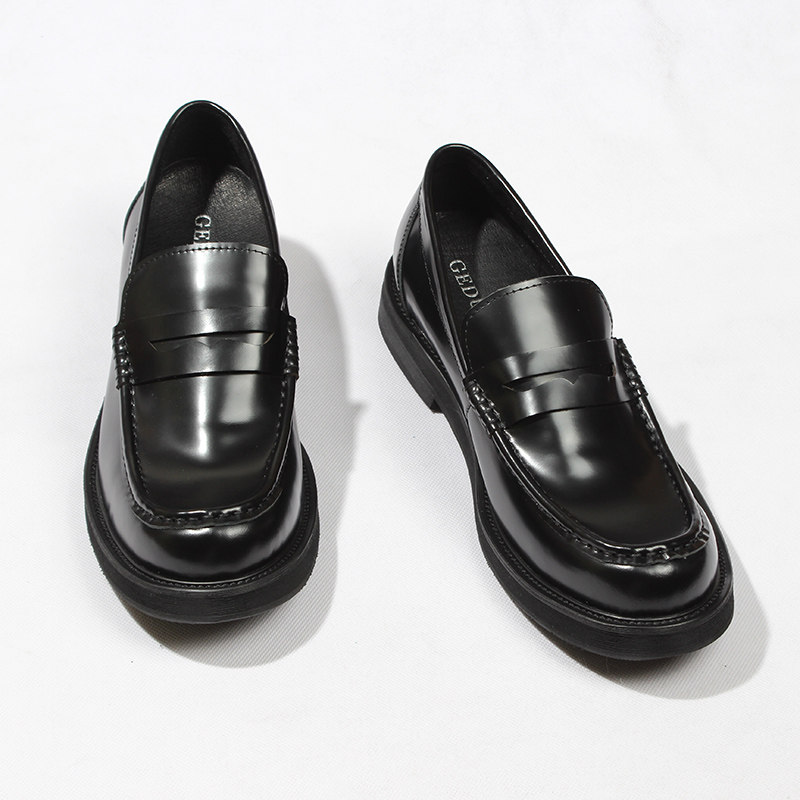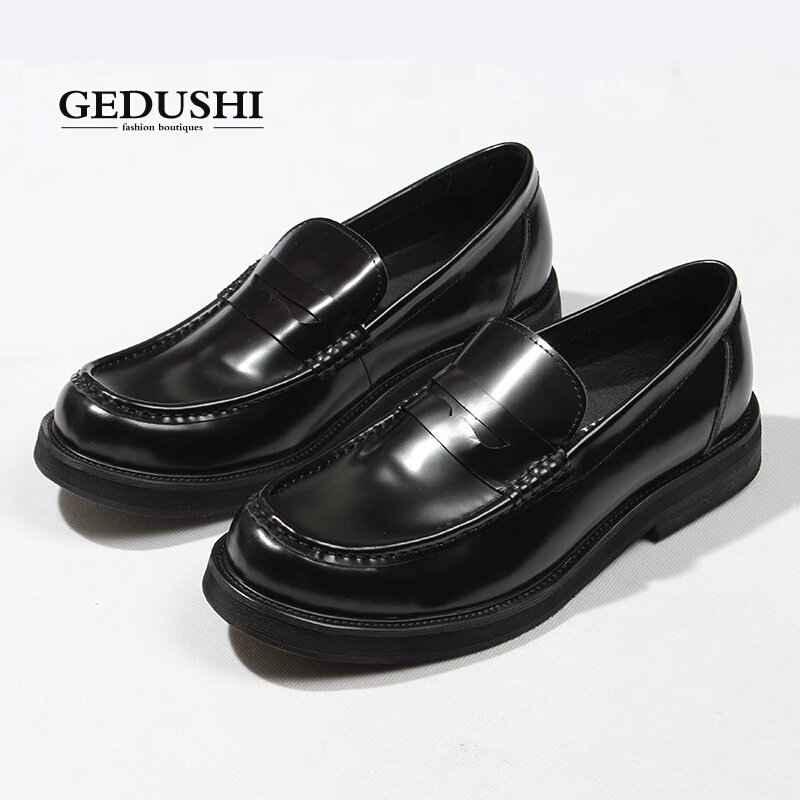 GDS欧美英伦休闲乐福鞋男真皮手工亮面鞋圆头厚底鞋一脚蹬鞋商务