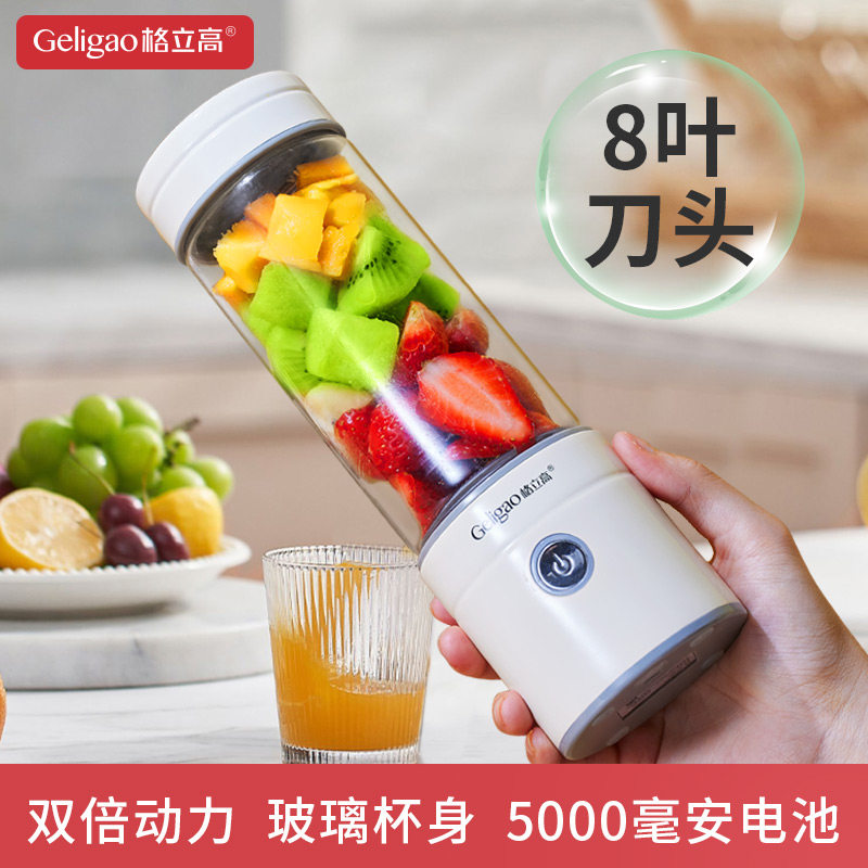 天猫格美电器专营店,8叶刀头双倍动力便携式榨汁机,5000毫安锂电池长续航一次充电等于20杯