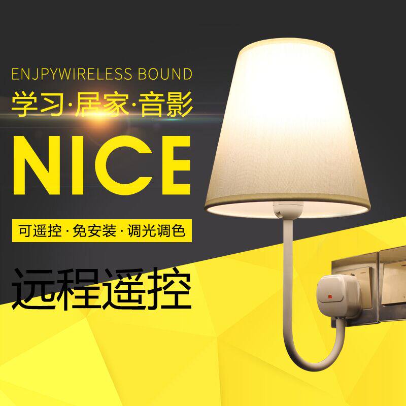 遥控免安装免打孔插座式现代简约床头卧室插头灯免接线创意壁灯
