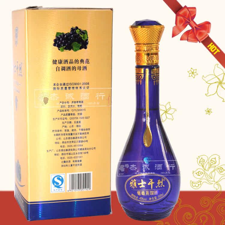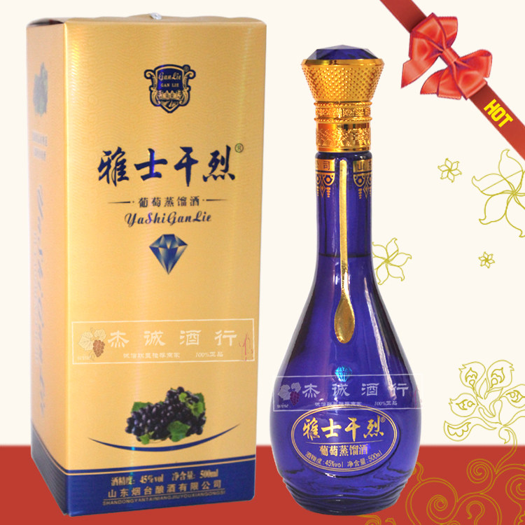 买一送一送裸瓶 雅士干烈葡萄蒸馏酒45度白酒500ML单支雅士烈焰