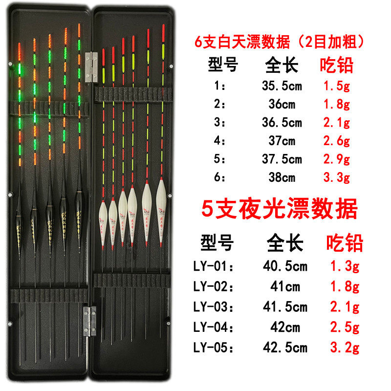 淘宝龙纹羽户外直销店,5支夜光漂+6支白天漂浮漂送漂盒重力感应咬钩变色电子夜光漂鱼漂