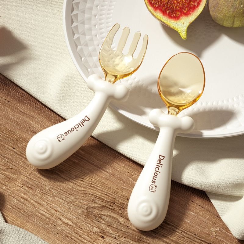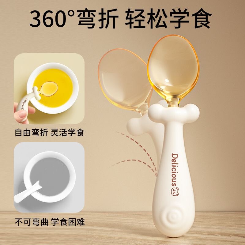 宝宝勺子学吃训练自主进食1岁以上可弯曲学食勺婴儿辅食儿童餐具