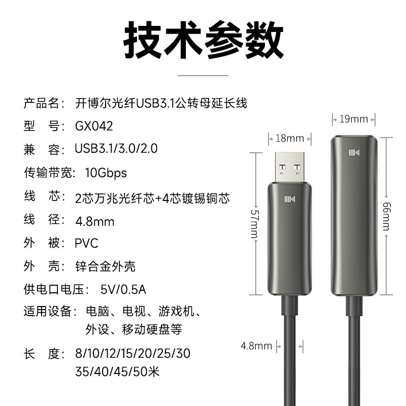 天猫开博尔旗舰店,开博尔光纤USB延长线公对母3.0