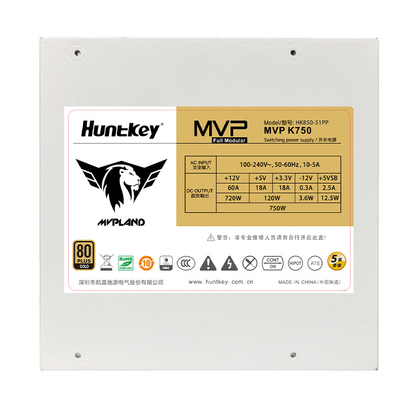 航嘉电脑电源MVP K750额定650W750W850W金牌全模组白色台式机电竞
