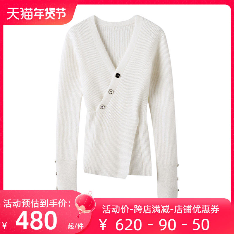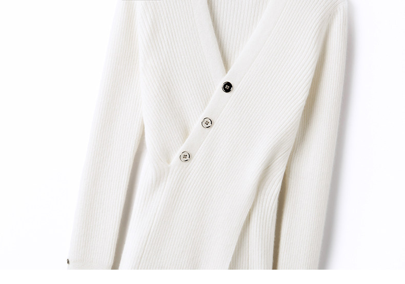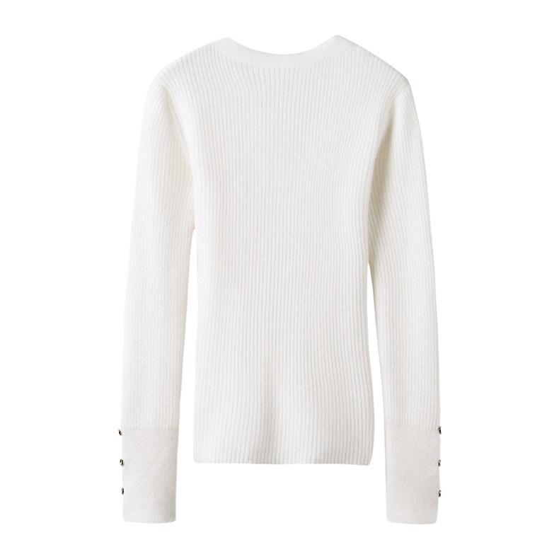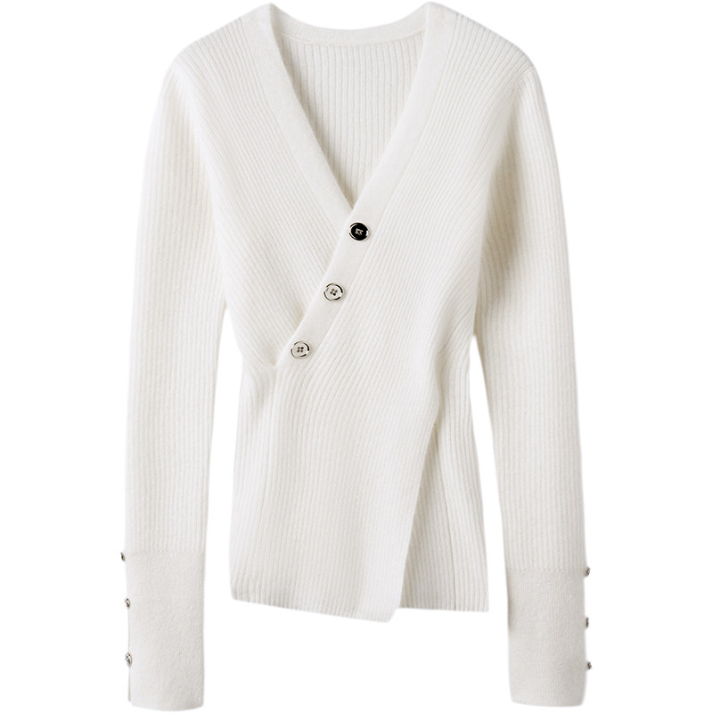 日常精致风~V领羊绒针织衫女春秋长袖修身羊绒毛衣设计感打底衫