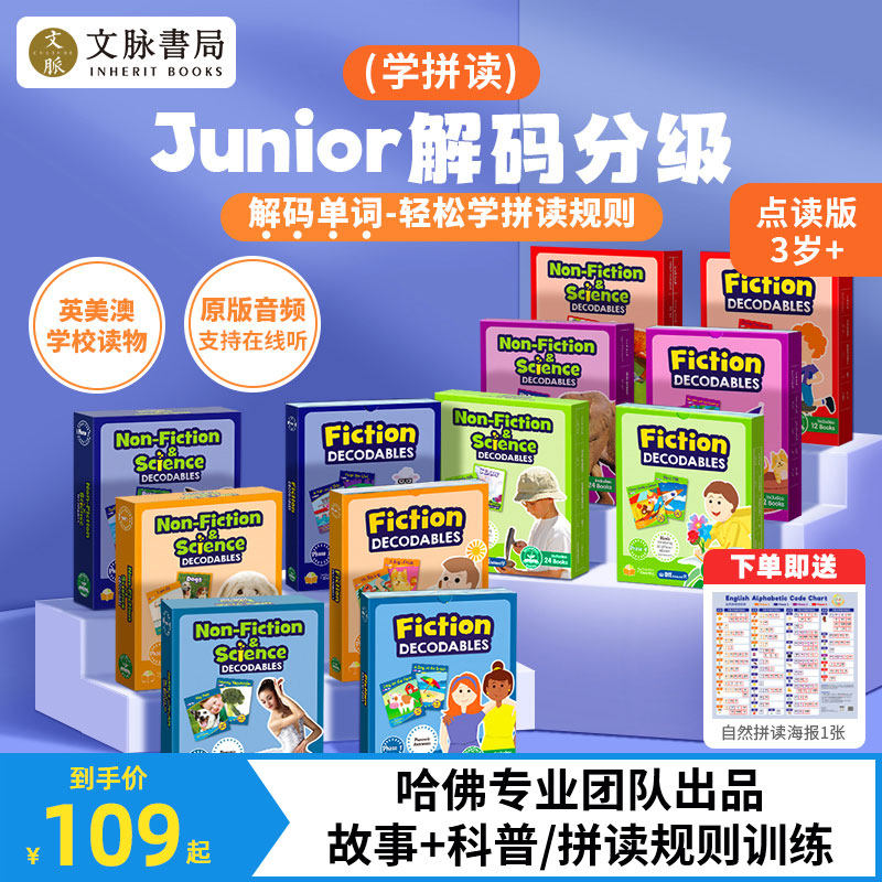 文脉书局junior自然拼读科普解码书分级阅读英语音标教材 词汇积累绘本小学生英语启蒙入门自学零基础少儿童英文发音规则读物训练