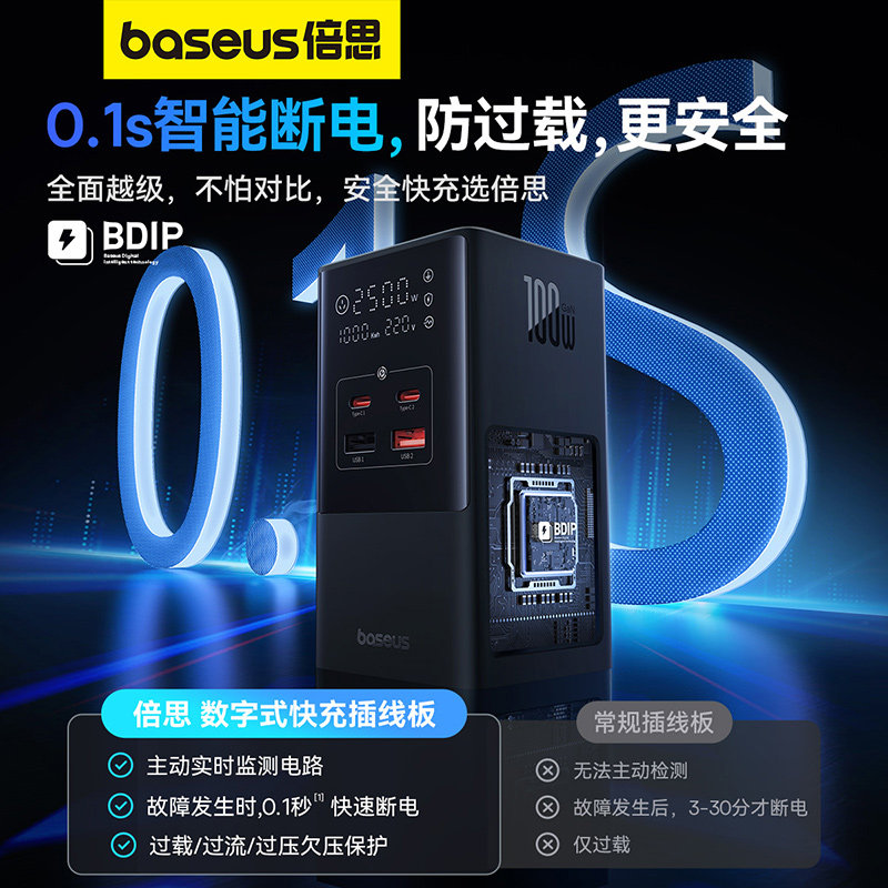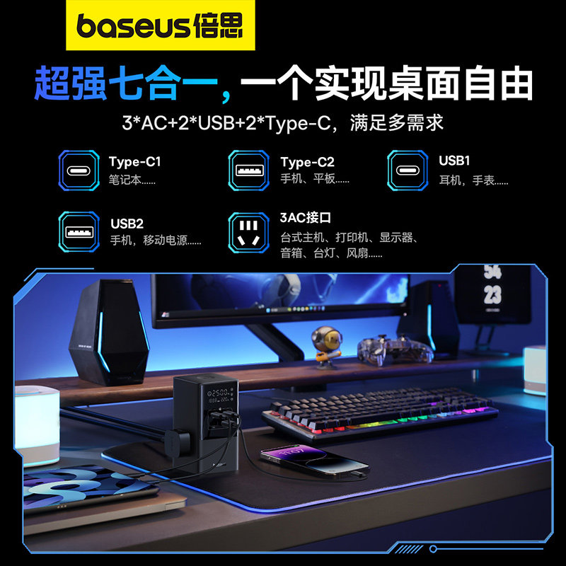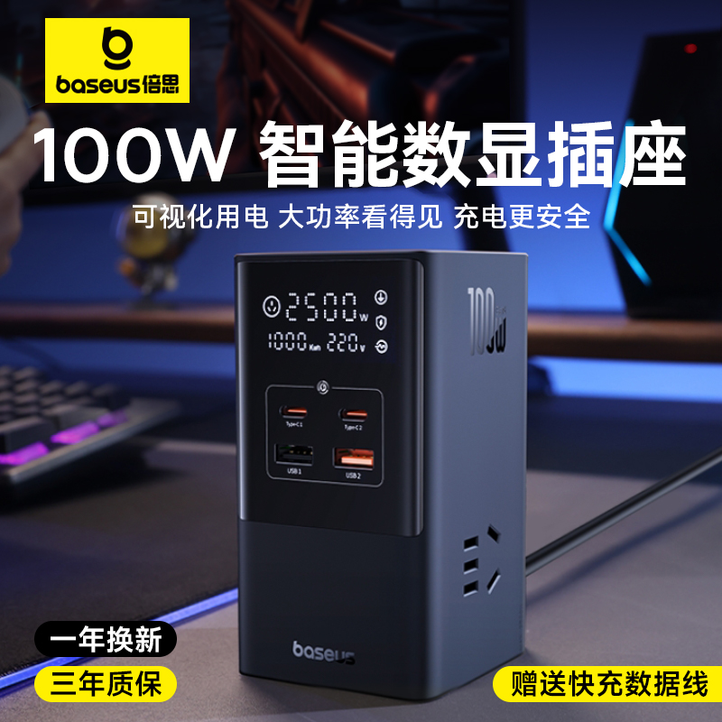 天猫baseus倍思旗舰店,倍思100W智能数显快充插座,智能数显 100W大功率快充 桌面充电站