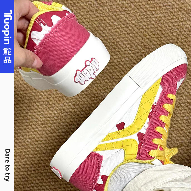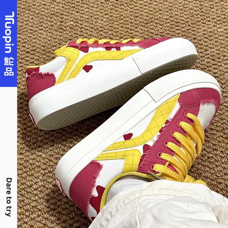 鮀品草莓蛋糕板鞋女2025春季新款帆布鞋百搭红色厚底运动休闲鞋子