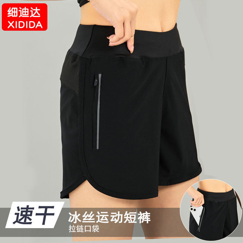 淘宝运动女孩Love,2024新款冰丝速干短裤女外穿夏季薄款高腰阔腿休闲运动三分热裤子