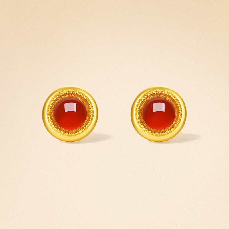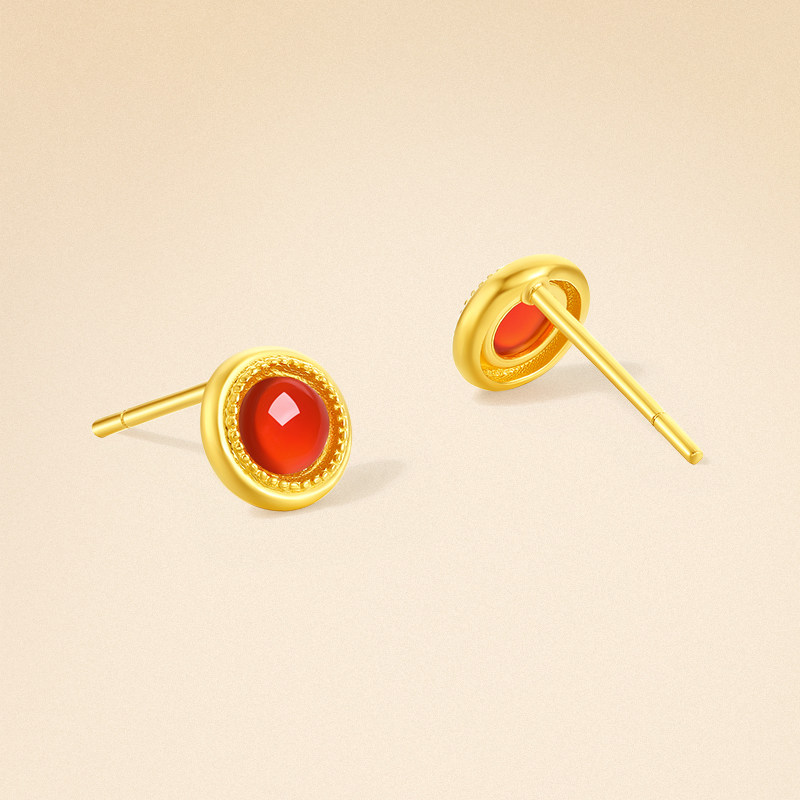 天猫周六福旗舰店,周六福黄金镶嵌5g足金玛瑙耳钉