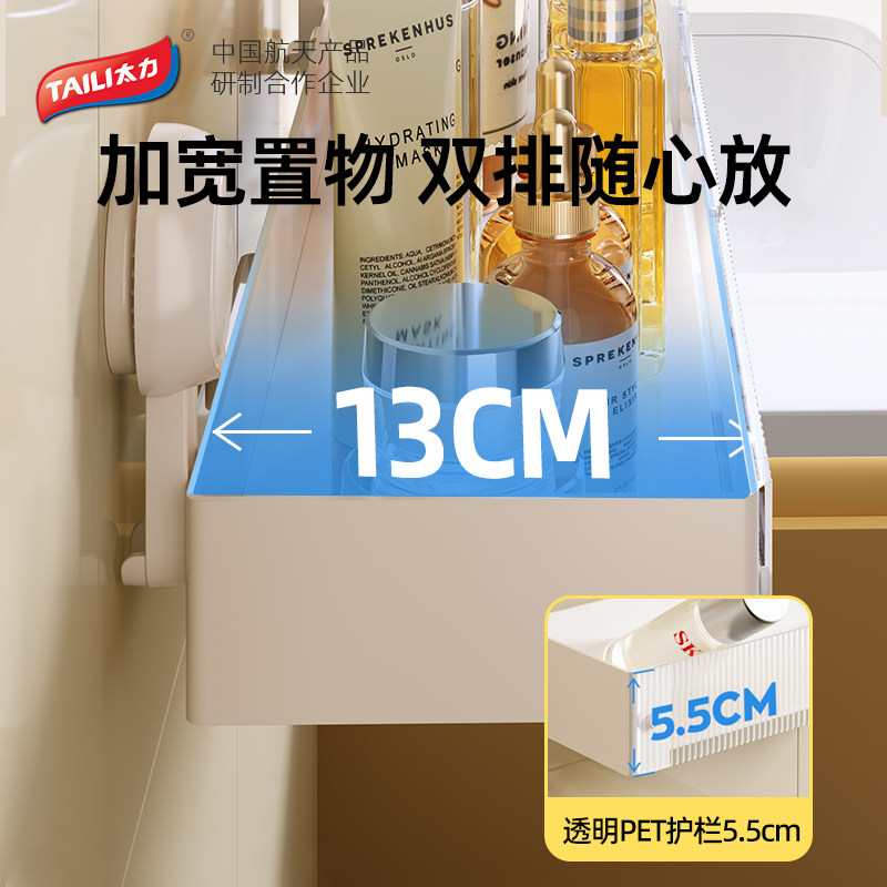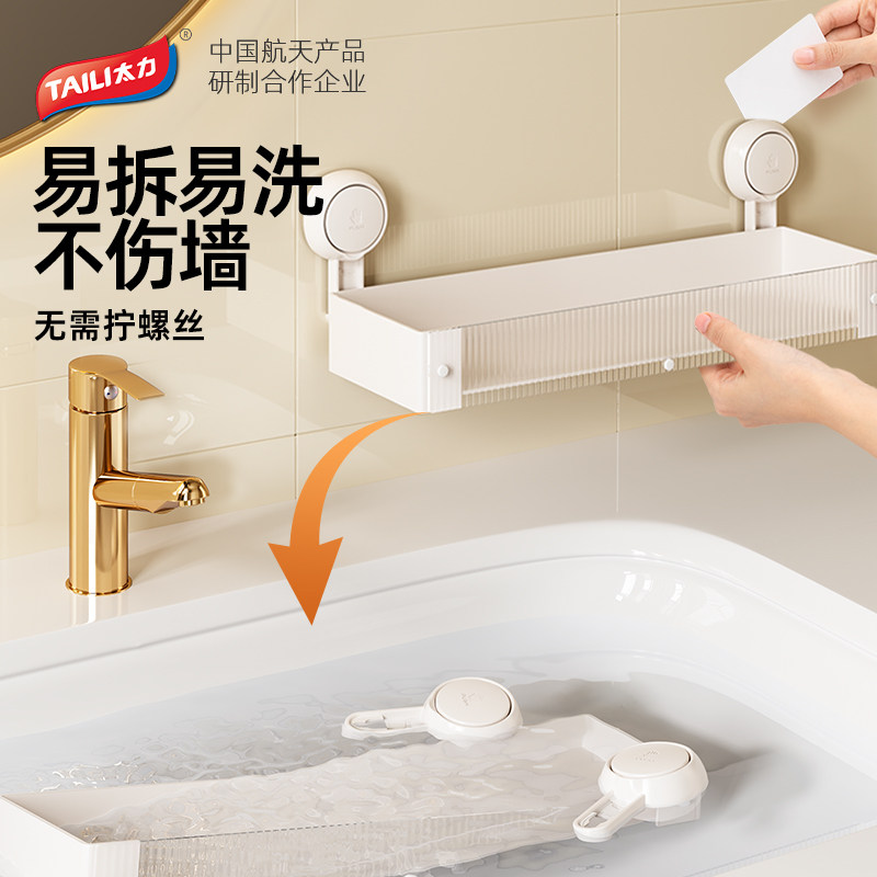 天猫太力家居旗舰店,轻奢太空铝卫生间置物架免打孔,即装即用,可拆卸重复使用