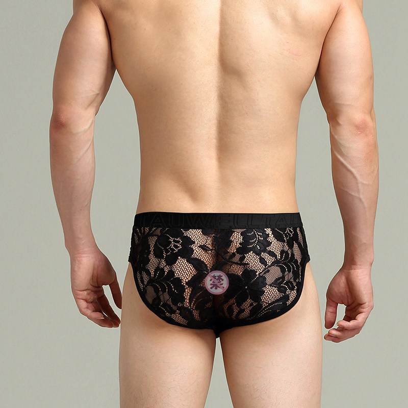 淘宝强叔尚品,实拍2色Tauwell/特为男士内衣青年性感三角内裤镂空蕾丝情趣透气