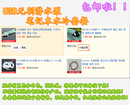 淘宝飞橙好物推荐,5V无刷潜水泵 笔记本水冷散热器铜管 CPU水冷套装 鱼缸 循环 喷泉