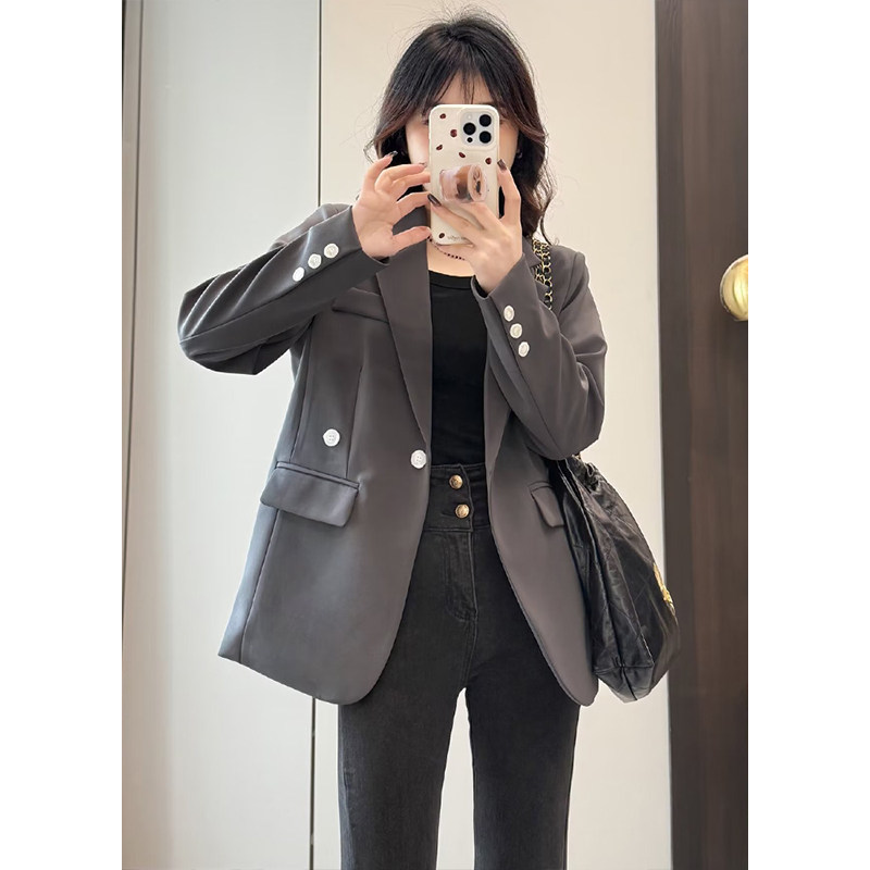 韩版高级感气质休闲西装外套女小众新款后背开叉设计简约小西服潮