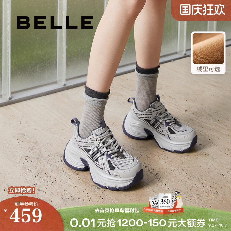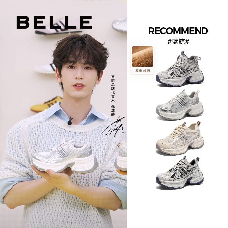 天猫百丽官方旗舰店,张凌赫同款百丽蓝鲸老爹鞋高帮加绒运动鞋厚底休闲鞋子D2K1DCM5,明星同款百丽厚底蓝鲸老爹鞋