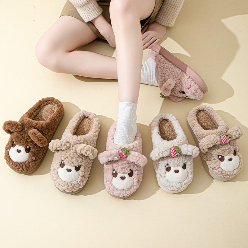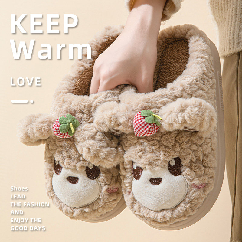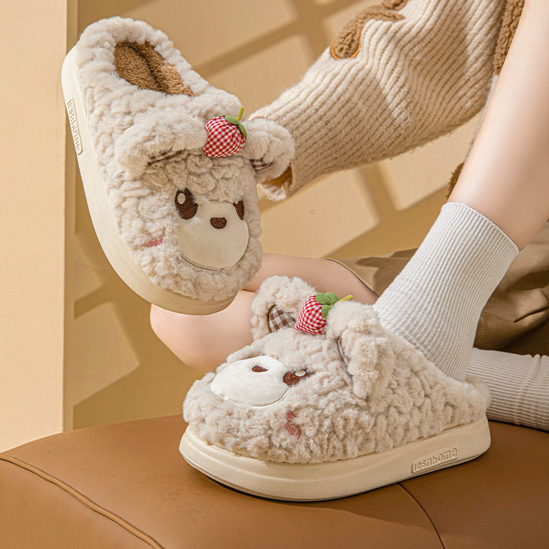 2024新款草莓熊棉拖鞋女秋冬季室内家居保暖厚底卡通情侣棉拖男冬