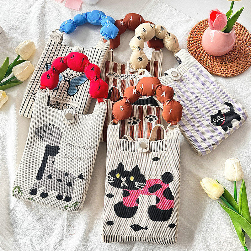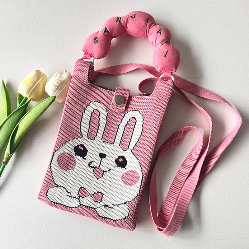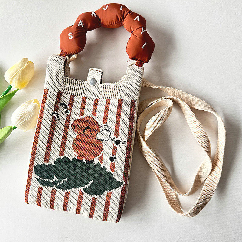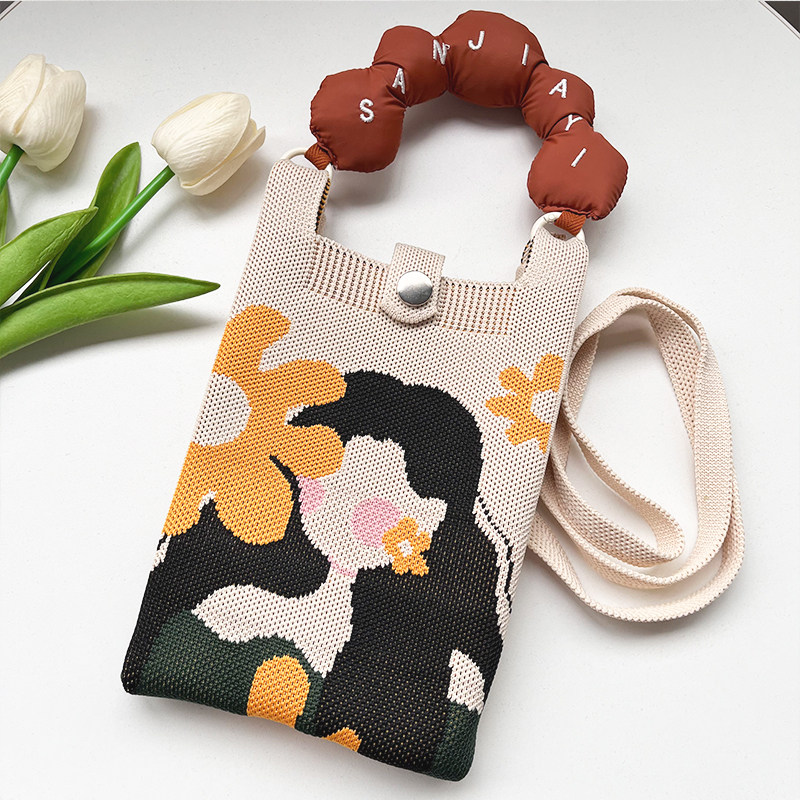 2024新款ins风可爱针织手提单肩手机包女斜挎毛线编织包零花钱包