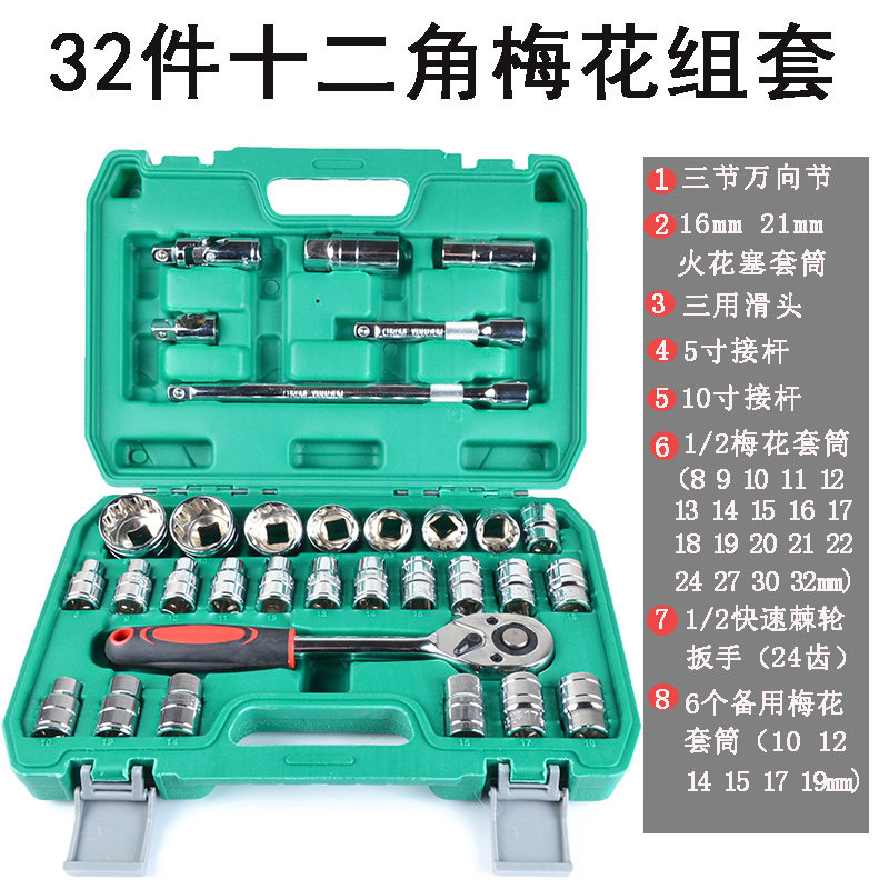 淘宝d[s520804868],32件套筒扳手12角套筒1/2 12.5mm梅花套筒套装组合汽修组套工具