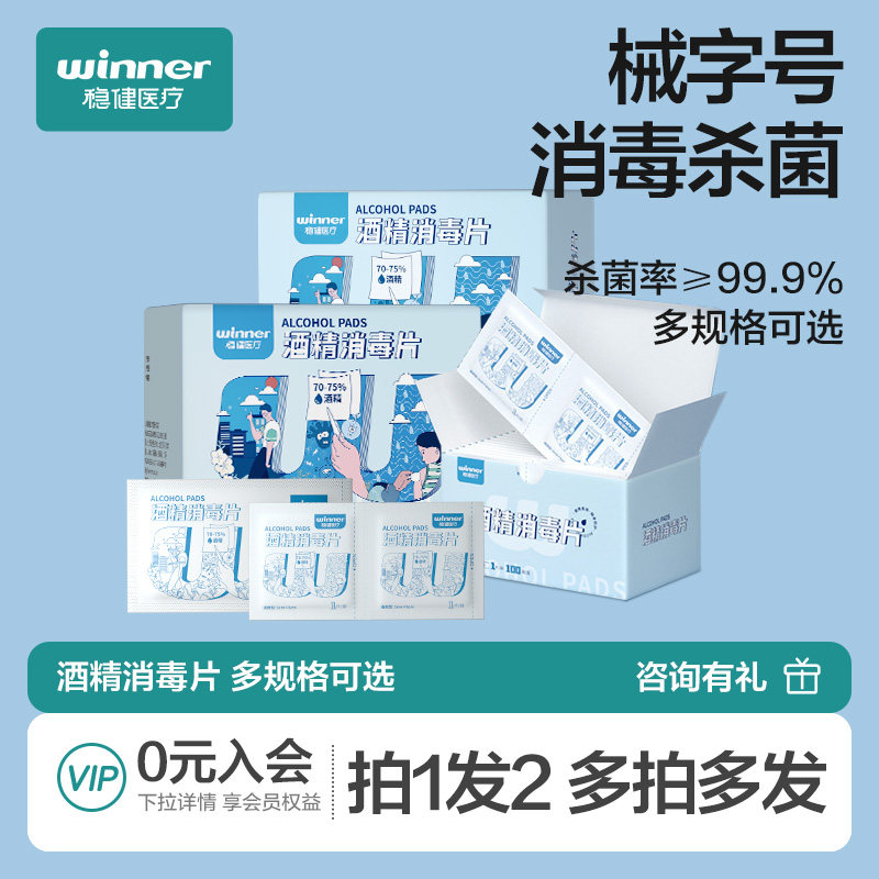 天猫稳健旗舰店,稳健医用酒精棉片100片一次性消毒片消毒棉贴擦手机屏幕清洁湿巾,杀菌率99.9% 便携消毒