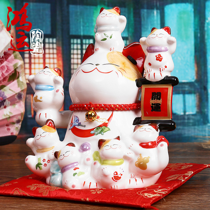 淘宝精品招财猫,金石工坊招财猫8寸中号店铺存钱罐