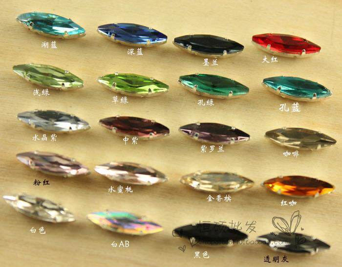 马眼4*15mm水晶玻璃手缝钻手机美容美甲DIY配件异形钻铜底托加厚