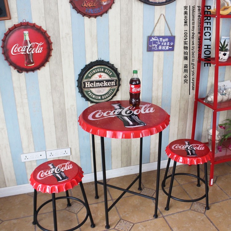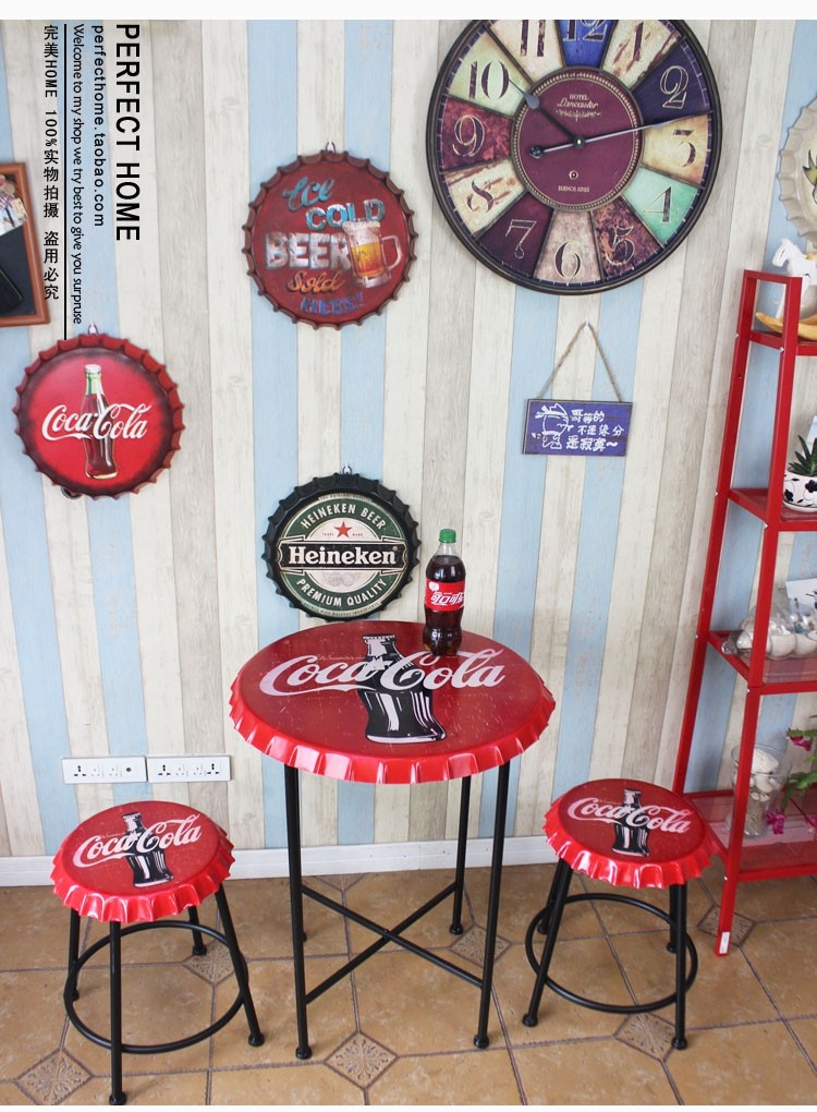 淘宝馨巣家居,美式复古风格瓶盖桌椅户外铁艺桌子,美式复古风格瓶盖桌椅户外阳台铁艺桌子酒吧咖啡馆个性桌 工业革命风地中海百搭款