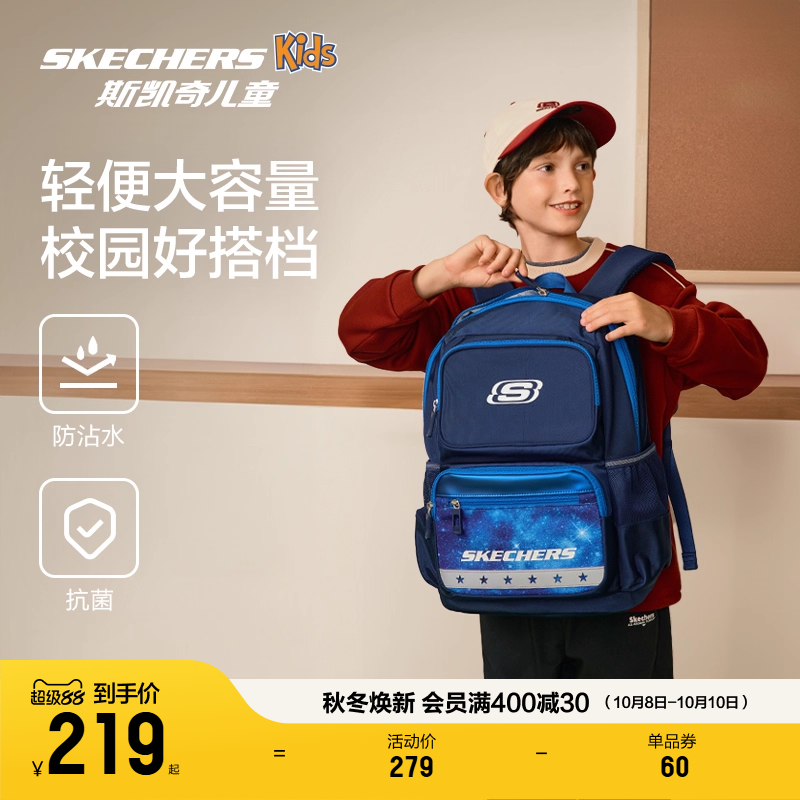 天猫skechers童鞋旗舰店,斯凯奇男女童大容量减负双肩书包,轻便大容量,3D后幅设计,舒适减负