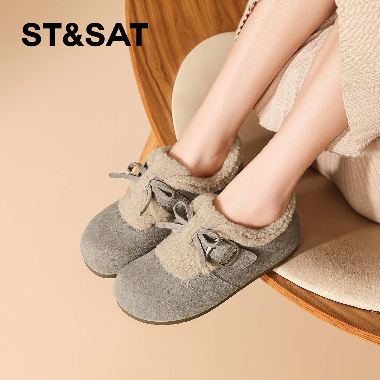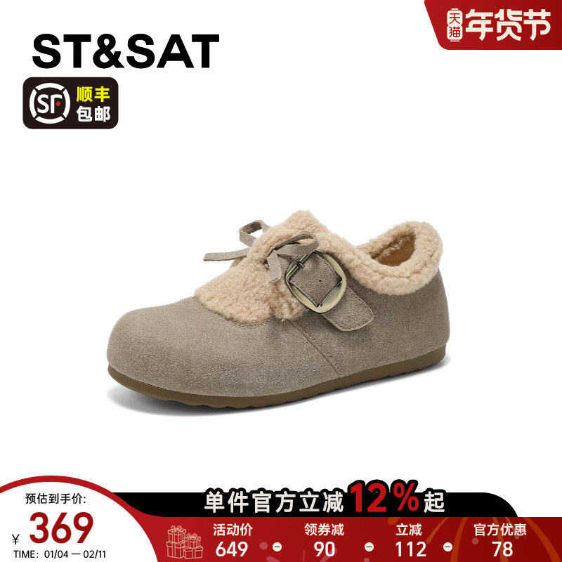 天猫星期六官方旗舰店,星期六加绒保暖勃肯鞋女2025新款,舒适百搭保暖勃肯女鞋软底轻便一脚蹬毛毛鞋
