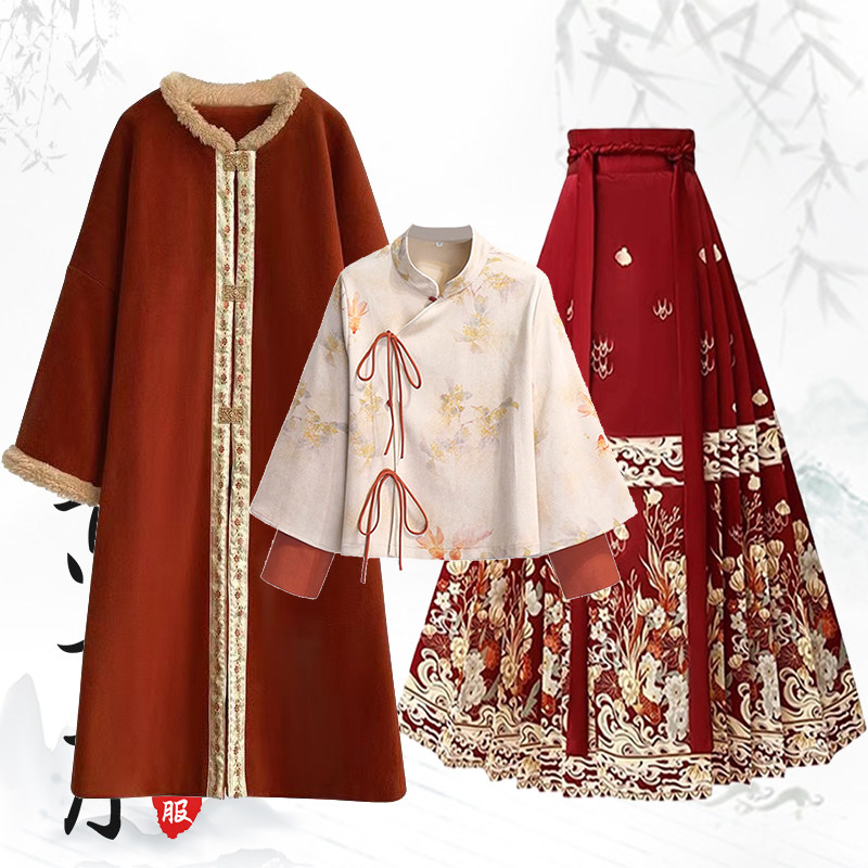 淘宝iDEALl理想原创制服店,冬季宋制红色喜庆汉服国风三件套