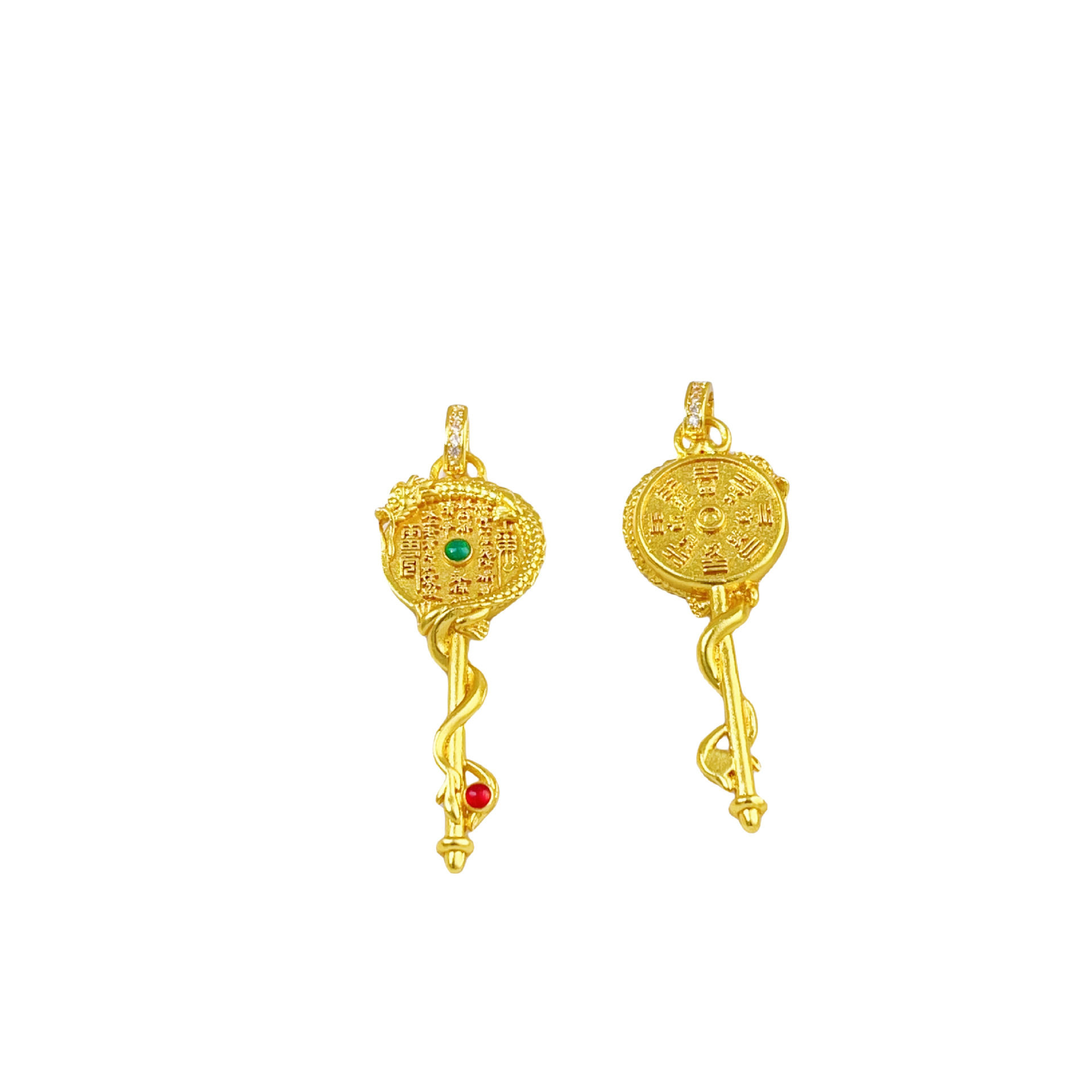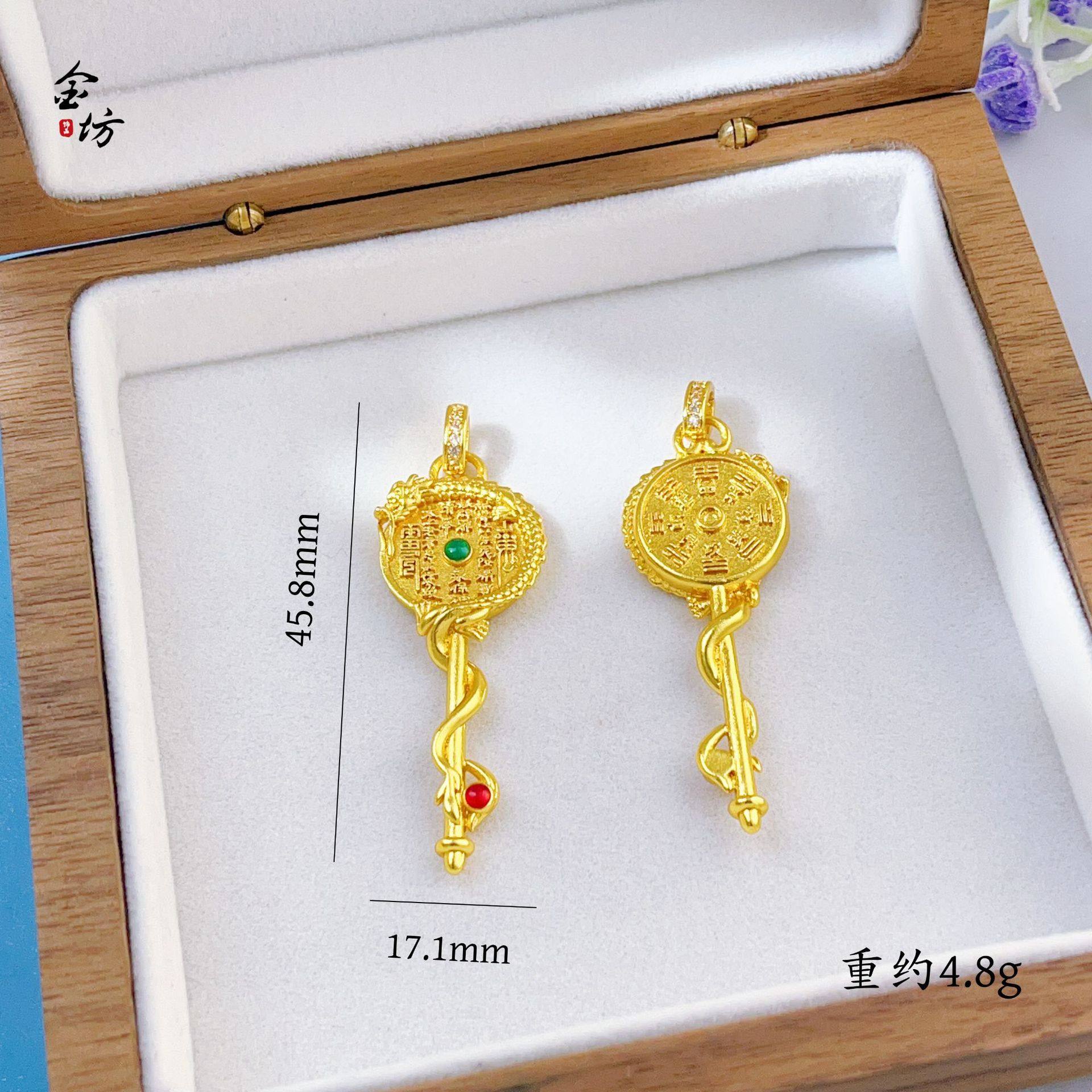 淘宝香港高品首饰特卖店,古法越南沙金镶嵌红绿点山鬼花钱吊坠项链毛衣链国潮风饰品不掉色