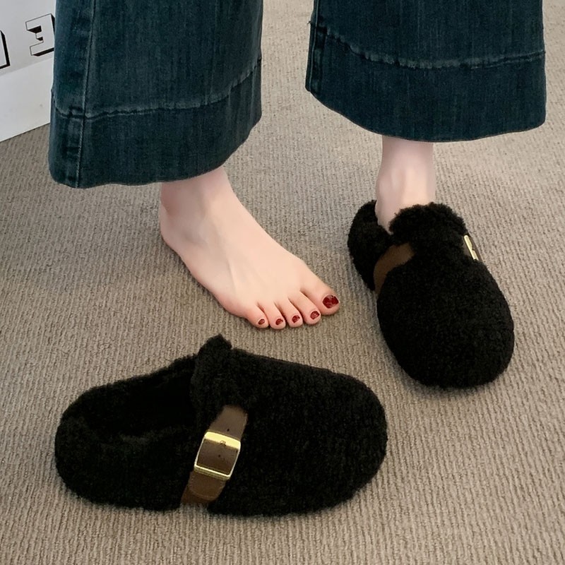 天猫淘工厂美妆直营,厚底勃肯鞋包头毛毛拖鞋女外穿2025新款秋冬爆款一脚蹬加绒棉拖鞋