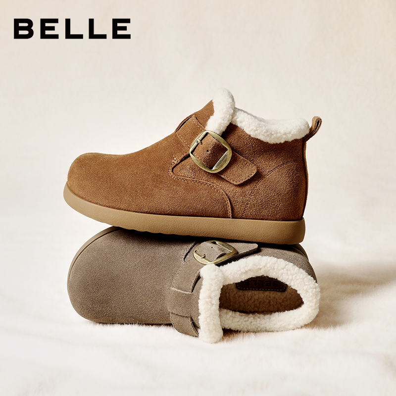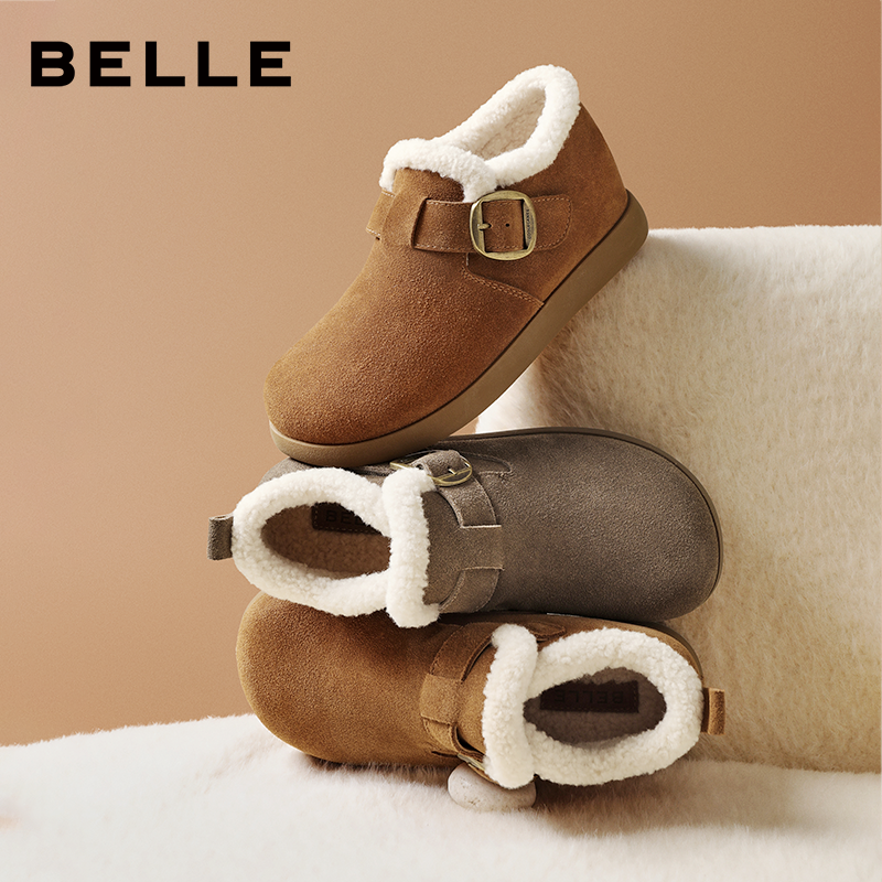 天猫百丽官方outlets店,百丽女靴毛毛勃肯乐福鞋2025冬季新款加绒保暖棉鞋雪地靴E4Z1DDM5
