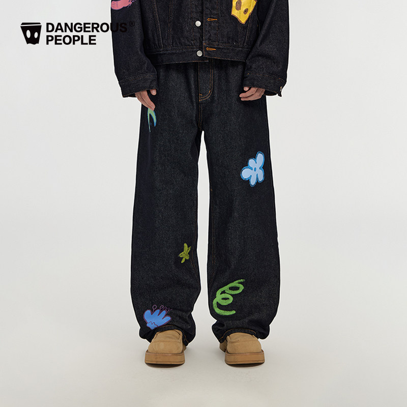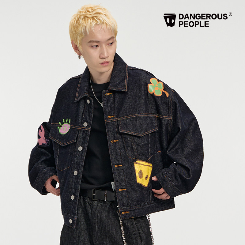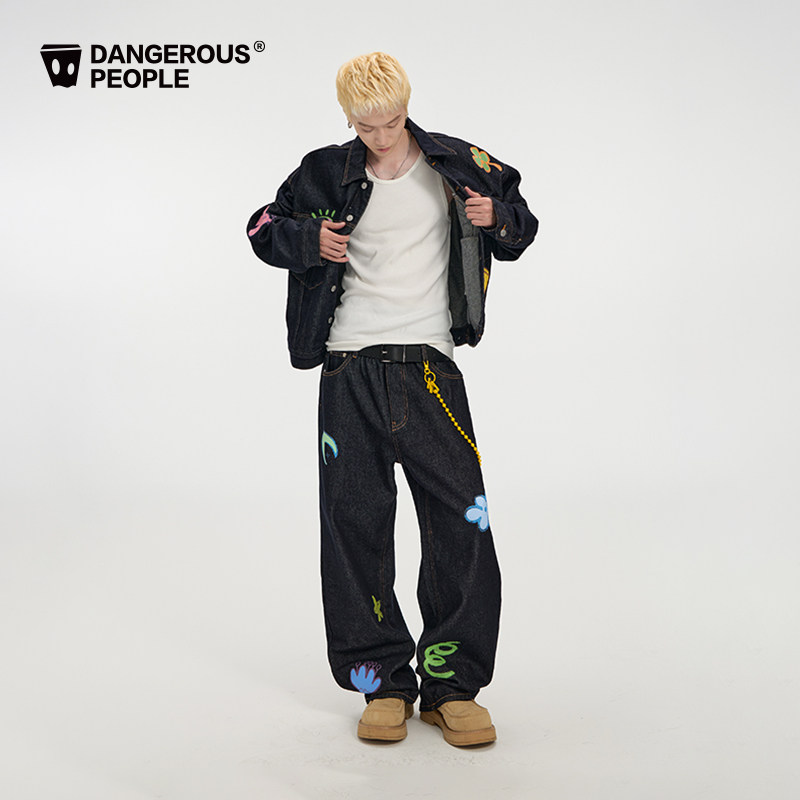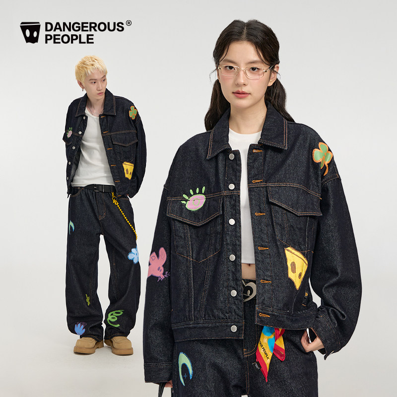 天猫dangerouspeople旗舰,Dangerouspeople薛之谦dsp童趣牛仔印花潮牌高街宽松外套长裤套装