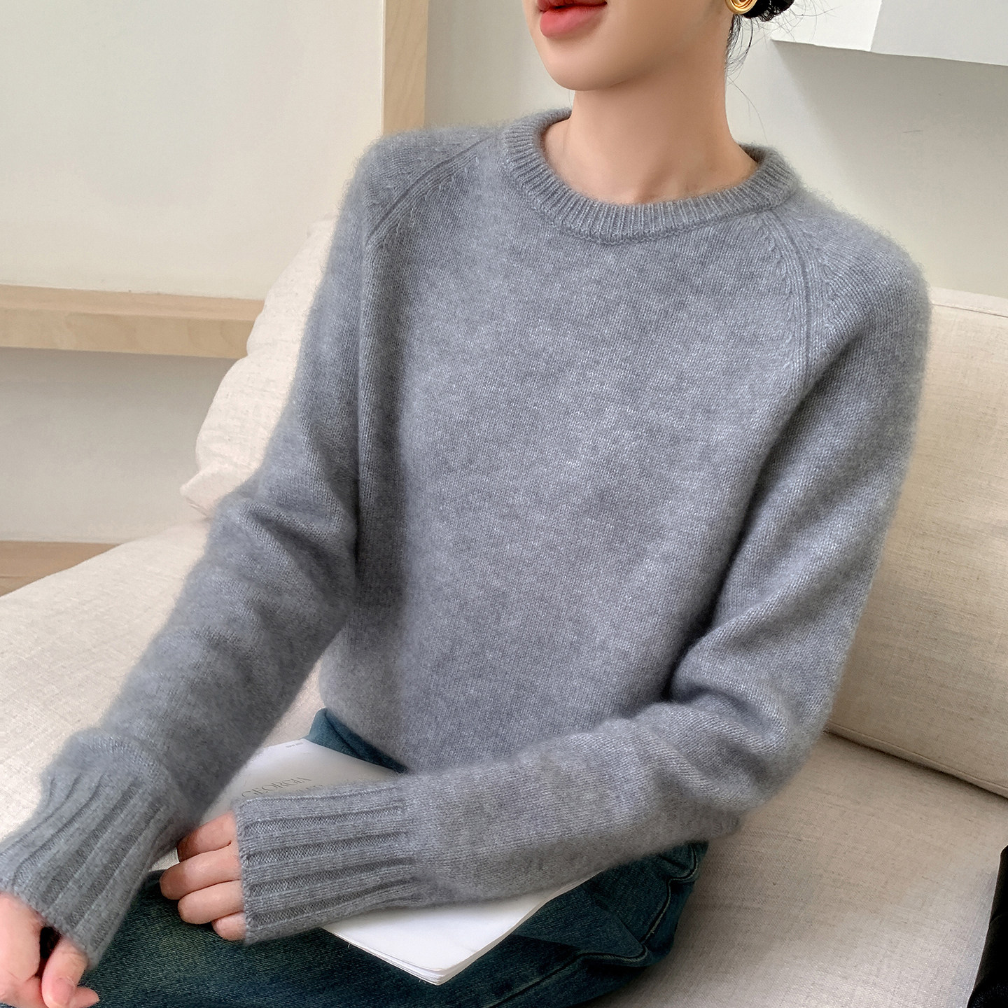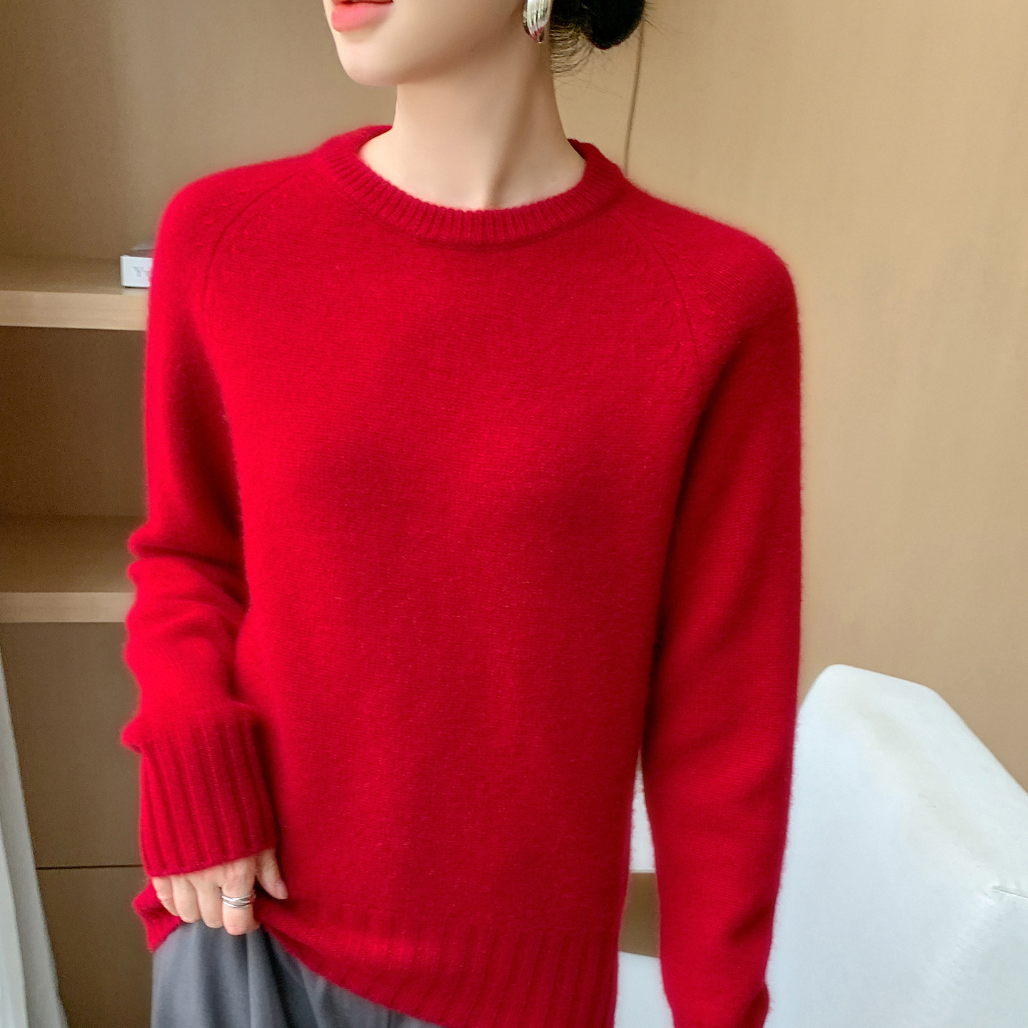 淘宝梦茜韵高端羊绒衫工厂直销店,轻奢山羊绒衫女圆领加厚宽松毛衣