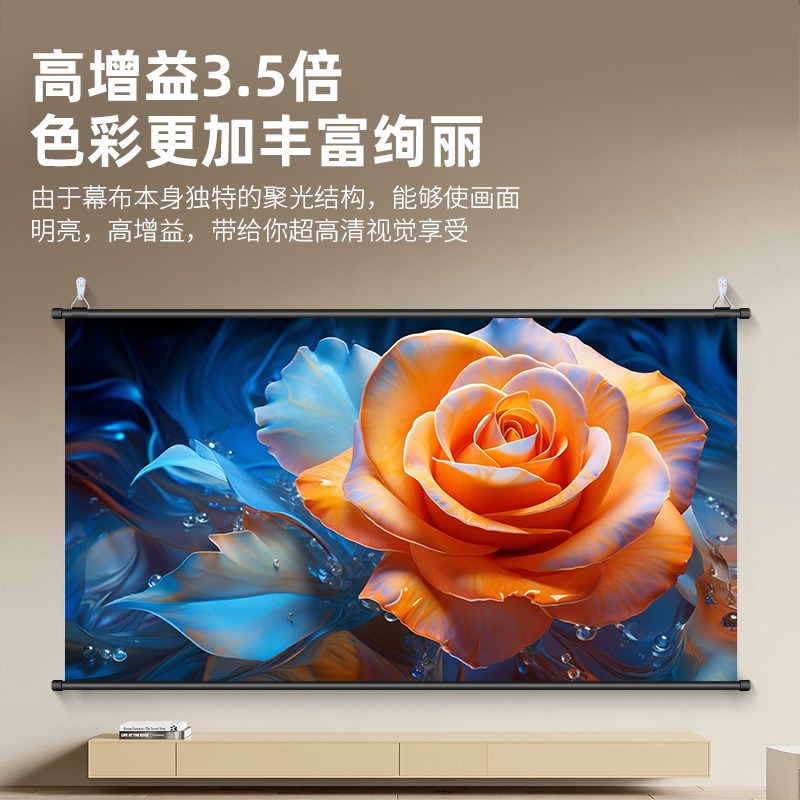 天猫贯君影音旗舰店,贯君高清免打孔金属抗光壁挂幕布,高清抗光免打孔便携高增益幕布