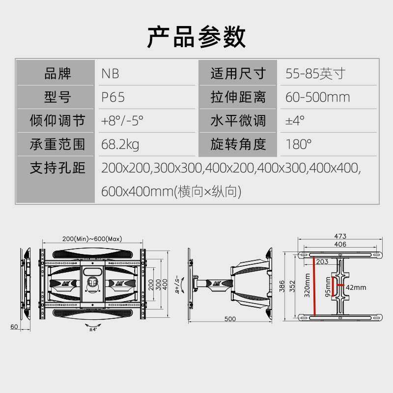 天猫松从凝旗舰店,NB P65(55-85寸)通用电视支架 电视挂架 伸缩支架 旋转挂墙架