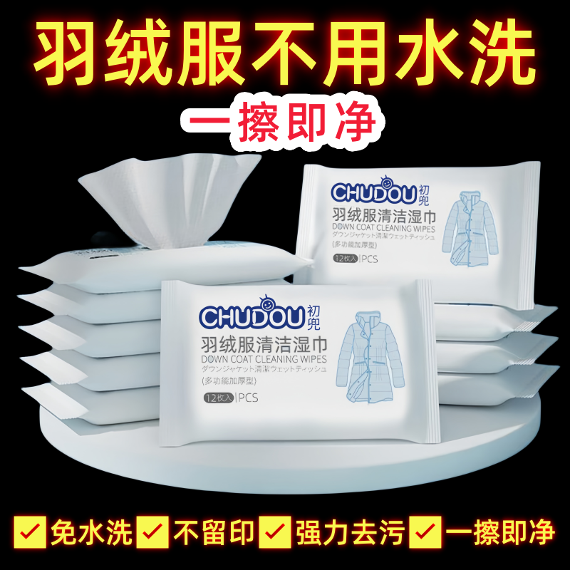 羽绒服清洁专用湿巾免洗神器去油污衣物污渍清洁剂衣服清洗干洗剂