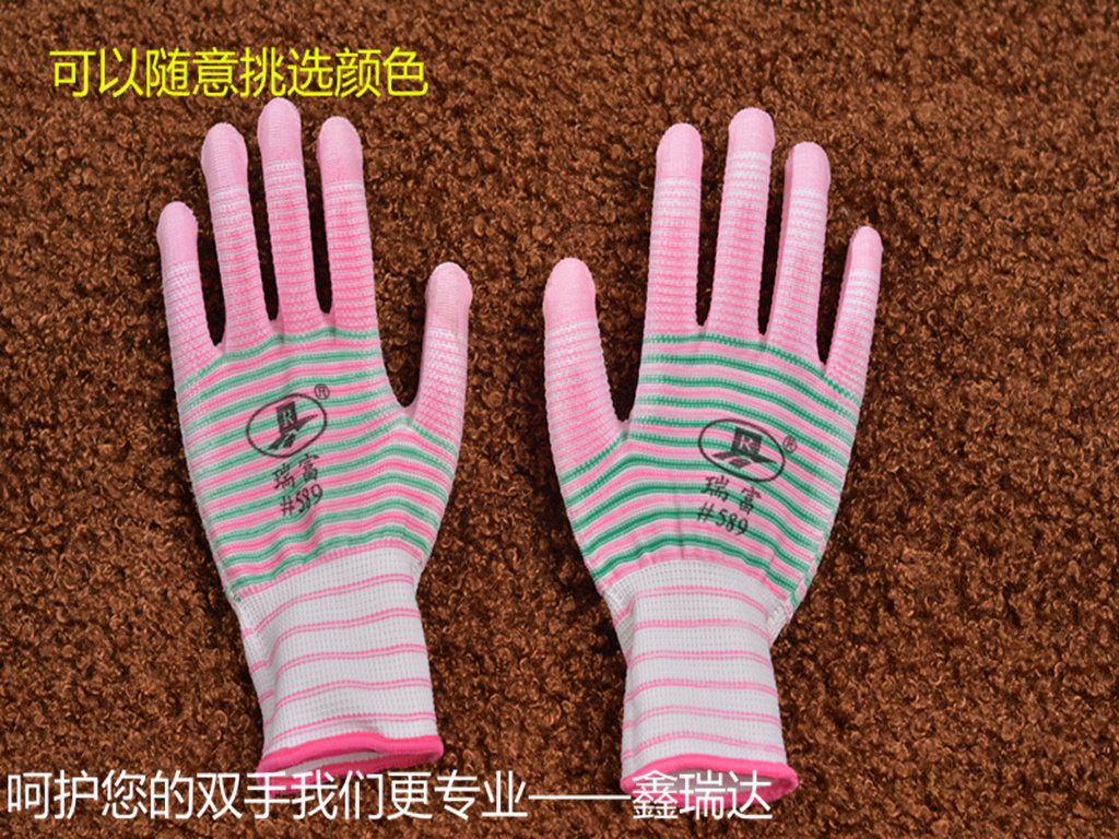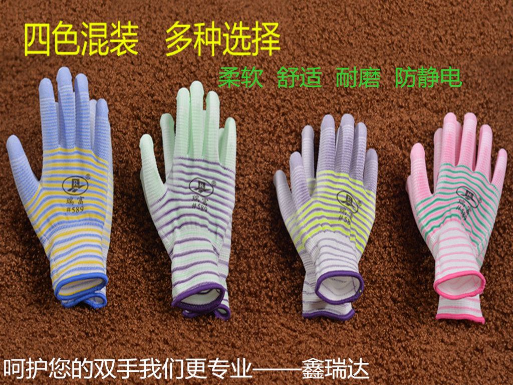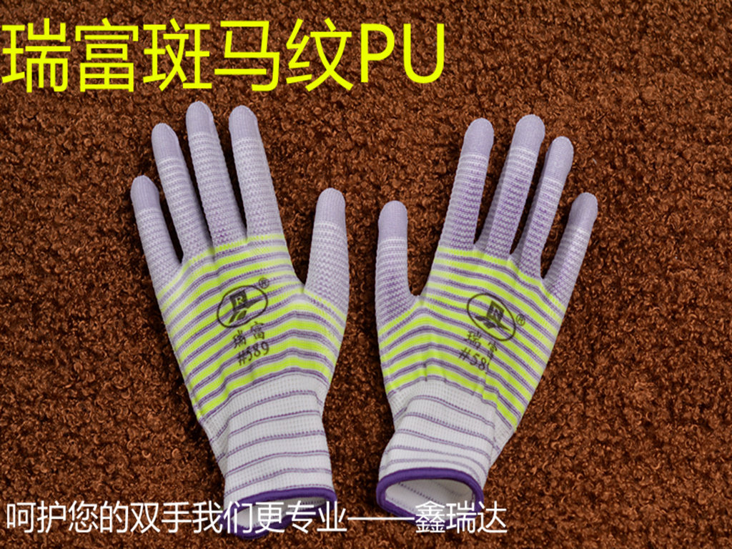 淘宝真国企店,斑马纹PU涂掌薄款男女防静电劳保工作手套耐磨电子厂包邮