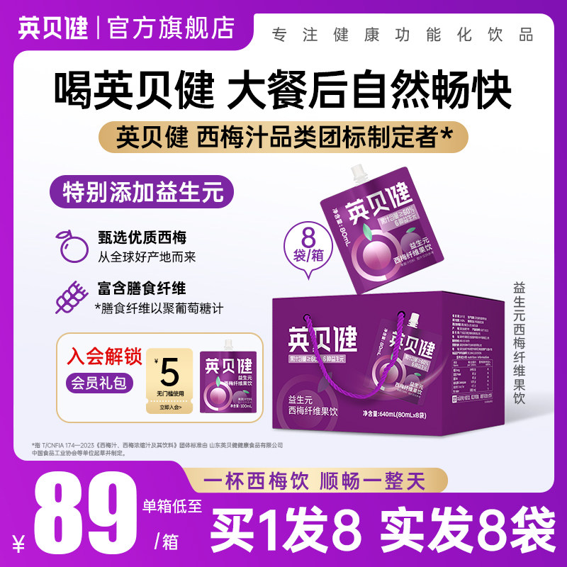 天猫英贝健旗舰店,英贝健益生元西梅汁便携礼盒袋装,升级6种益生元 便携小袋装80ml*8袋/箱