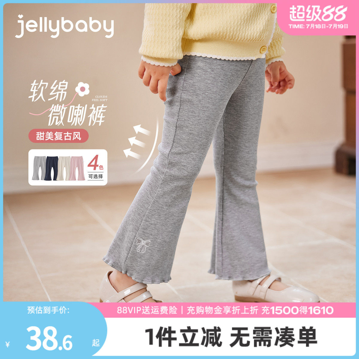 天猫jellybaby旗舰店,[7A抗菌]女童打底裤秋外穿3宝宝洋气花边微喇裤法式秋装5儿童长裤,天猫品质 无忧退换 放心选购